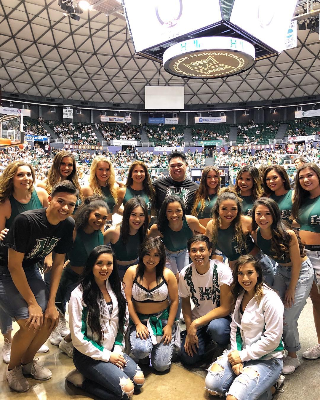▲ハワイ大学UH Rainbow Warrior Dancers バスケットボールの試合応援に