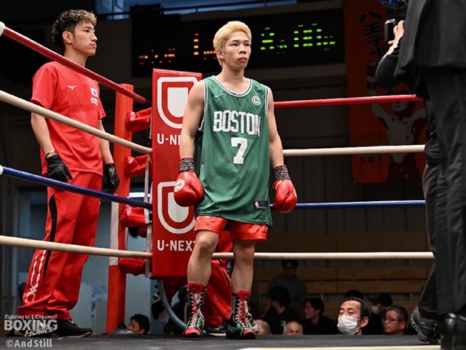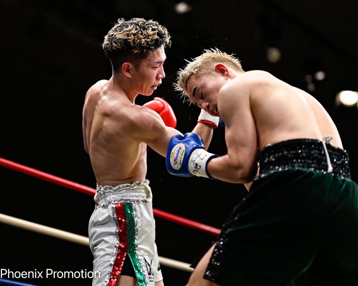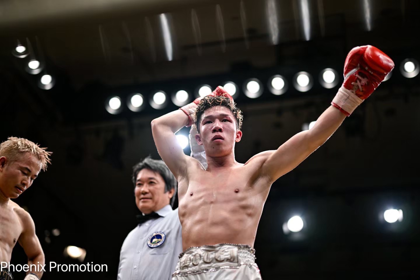試合時の着用トランクスにロゴの掲載。会場は後楽園ホール。試合配信先はU-NEXT、Lemino、FOD、等