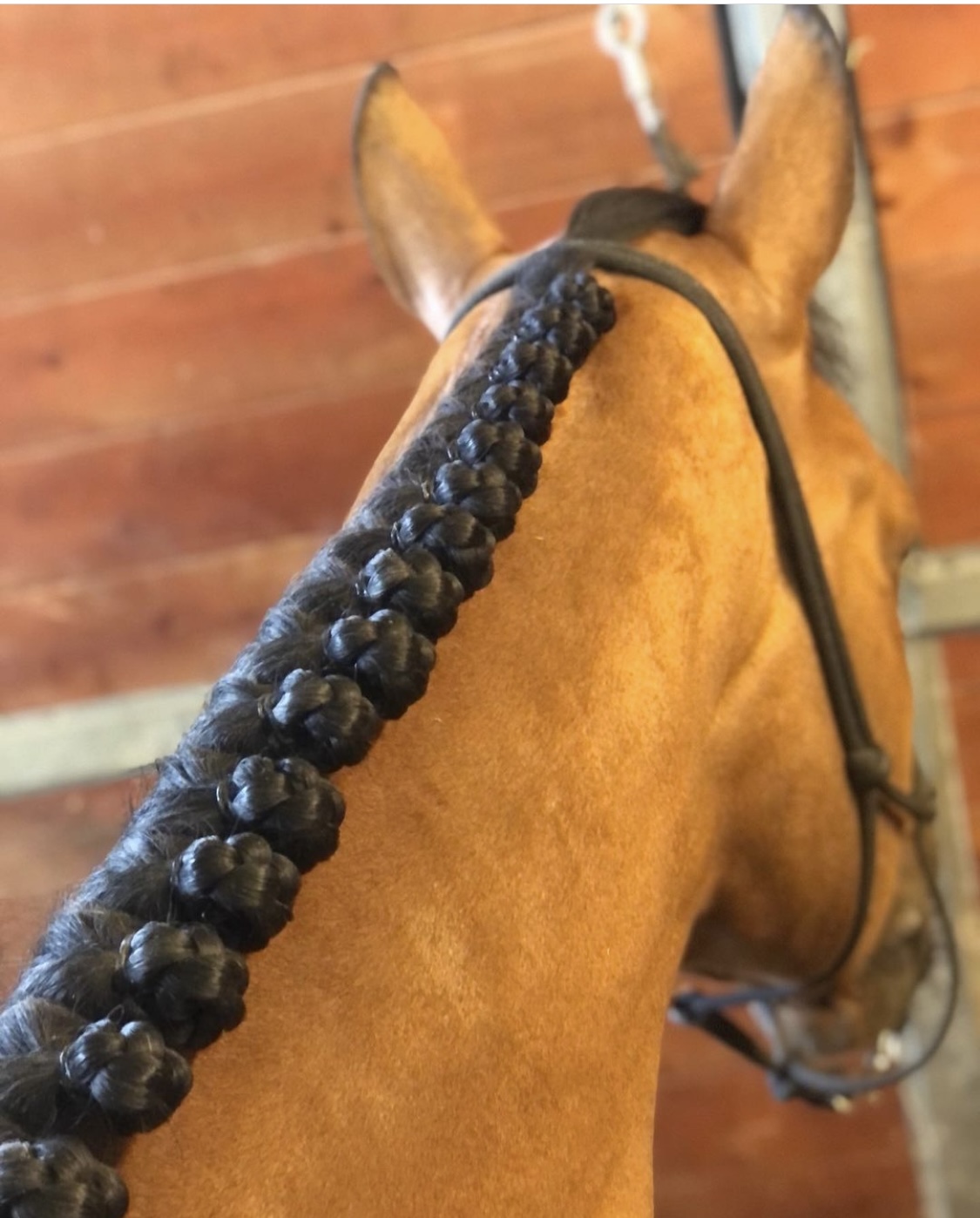 ▲指導をしてくださっていたオリンピック選手のグルームをしたときの馬をドレスアップ