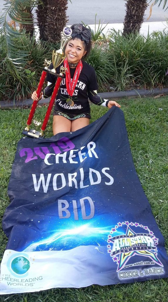 現在はオーストラリア代表のチームに所属し、2020年4月末アメリカで開催されるチアリーディングの世界大会への出場に向け、私の活動に賛同してくださり、ご支援頂けるスポンサー様を現在募集しています。