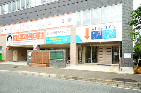▲福岡市博多区にある内科・消化器科・内視鏡検査ができるクリニック。ビルの2Fがクリニックです。