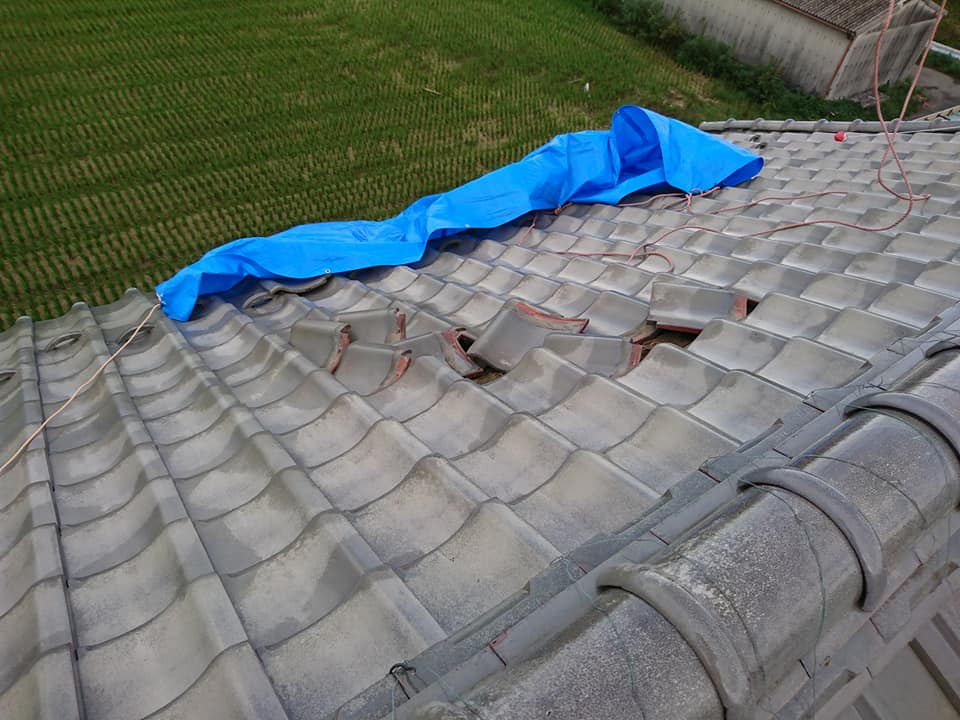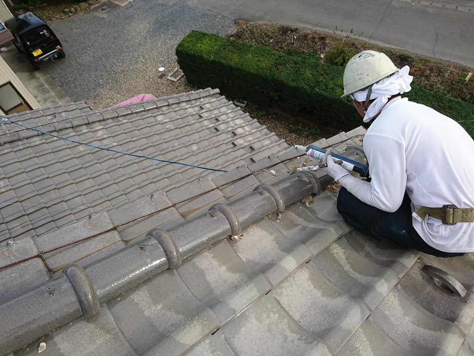 ▲瓦の修理中