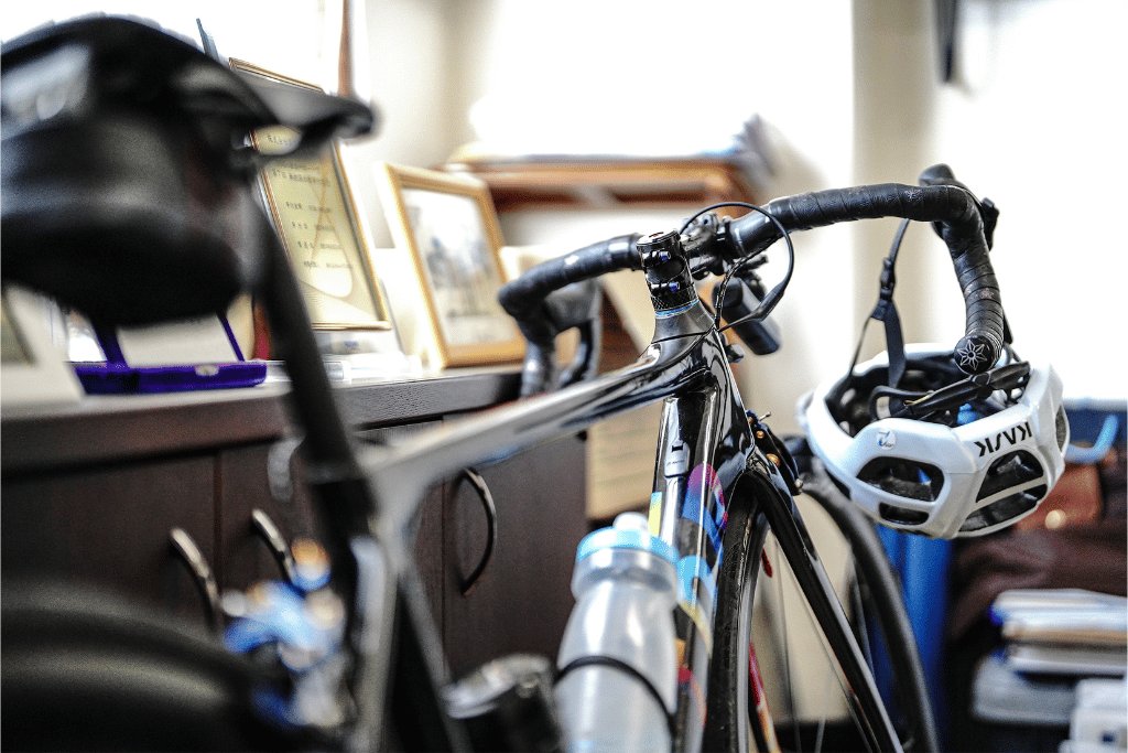 ▲社長の島田自身がロードバイクの愛好家で、ロードバイクのチームやアスリートにスポンサードしております。
